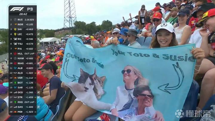 镜头捕捉到梅奔车迷手举Toto&Susie的应援旗帜!ToTo看到后也是非常开心!