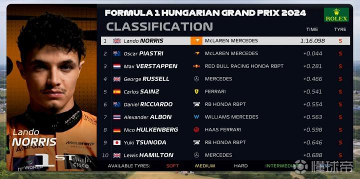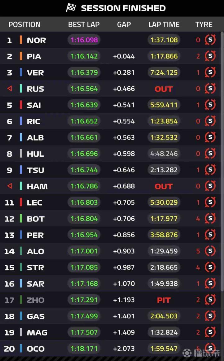 诺里斯三段刷紫强势登顶!比第二名的拉塞尔快出0.466秒!萨金特也上到P5!