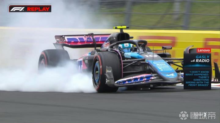 加斯利在1号弯出现锁死的情况!他也在TR中表示赛车前轮的刹车存在一些问题!