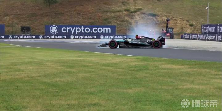 汉密尔顿在9号弯出现转向过度的情况!赛车停在了草地上!赛事短暂出动黄旗!