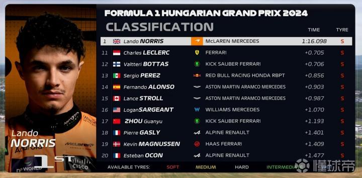 F1匈牙利站三练:诺里斯全场最快,维斯塔潘第3,周冠宇第17