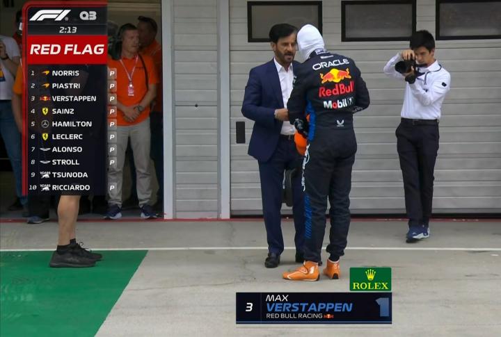 不跑了这是?维斯塔潘已经离开赛车与FIA主席苏拉耶姆展开了交流!