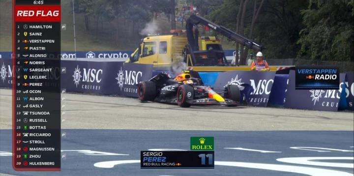 糟糕!红旗!佩雷兹在8号弯打滑上墙!一练暂停!!!