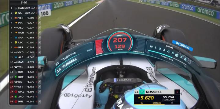 大家都完成了自己的首个飞驰圈!汉密尔顿暂时领跑全场!