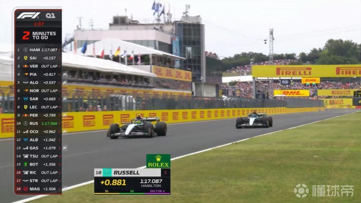 Q1被淘汰选手:佩雷兹、拉塞尔、周冠宇、奥康、加斯利