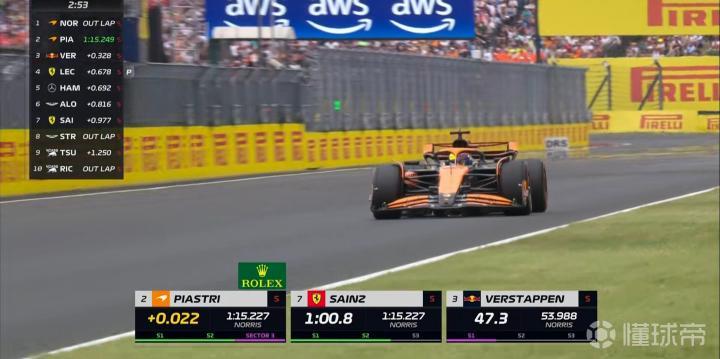 皮亚斯特里第三段刷紫!超越维斯塔潘上到第二!迈凯伦双车领跑!