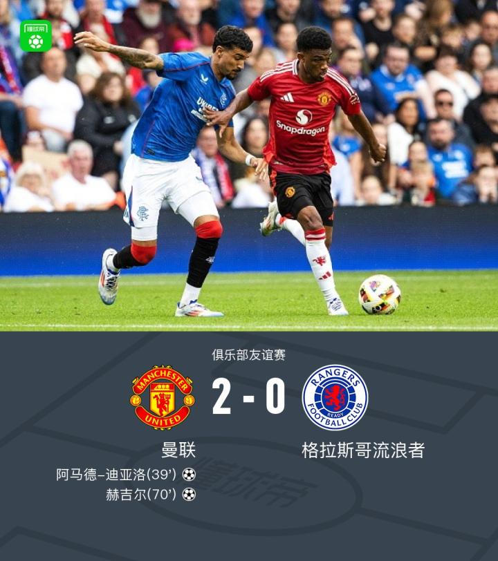 【曼联2-0格拉斯哥流浪者,阿马德-迪亚洛建功,赫吉尔爆射破门】