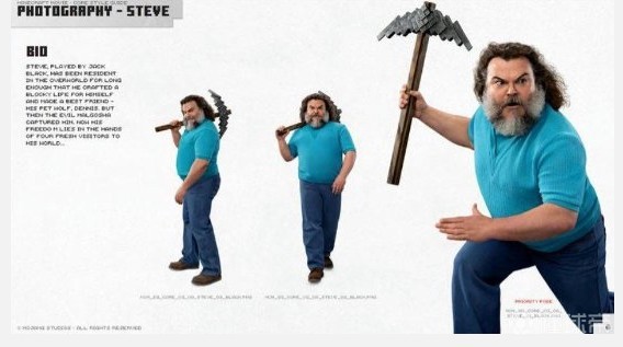 这些图片疑似来源于Mojang工作室制作的文件,并通过4chan在社交媒体上流传。照片中展示了杰克·布莱克饰演的史蒂夫形象,演员穿着经典的蓝色衬衫和牛仔裤,留着胡子,手持方块镐。同时,照片还展示了苦力怕、方块蜜蜂和粉色斗鸡眼的羊。