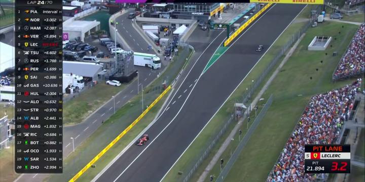 第23圈!勒克莱尔选择进站执行一停!出来后落到角田的身前!