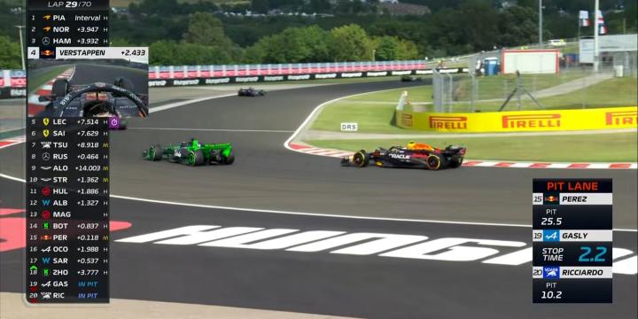 第29圈!佩雷兹、加斯利&阿尔本进站执行一停!出站后后两位落到队尾!