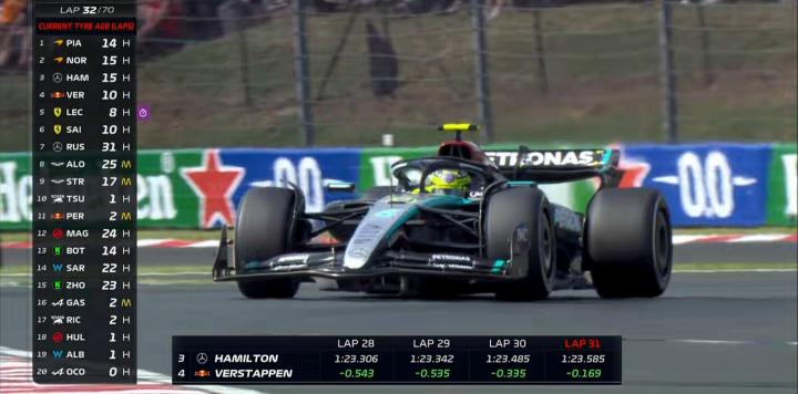 第32圈!维斯塔潘持续向汉密尔顿推进!拉塞尔还在进行保胎未进行一停!