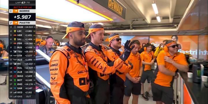第51圈!迈凯伦在TR中告知皮亚斯特里:如果他追近到诺里斯身后,车队将要求诺里斯让车!