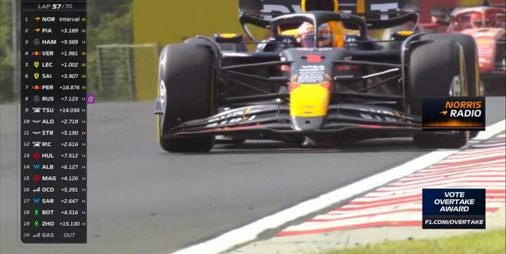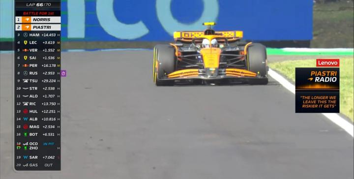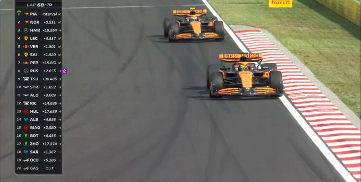 第68圈!诺里斯最终选择了让过!皮亚斯特里上到第1!