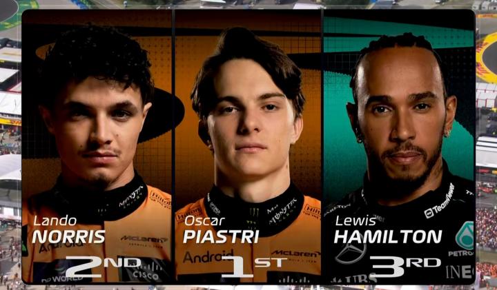 第1-第5:皮亚斯特里、诺里斯、汉密尔顿、勒克莱尔、维斯塔潘