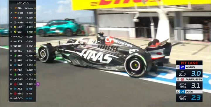 第7圈!阿尔本、马格努森、奥康选择进站一停!尝试使用undercut战术!