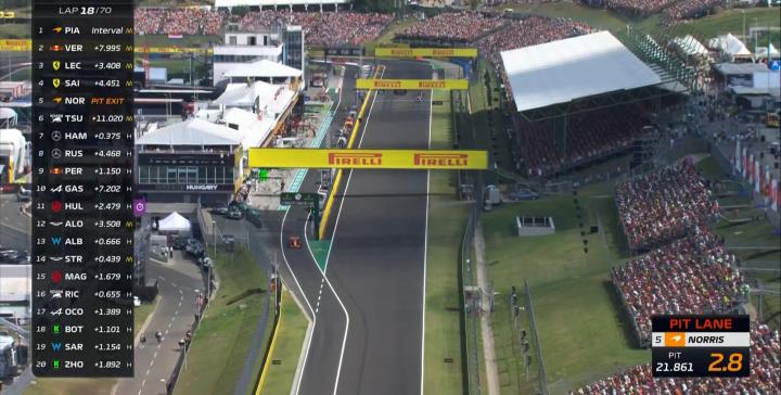 第18圈!迈凯伦率先选择进站!诺里斯出站后落到P5!