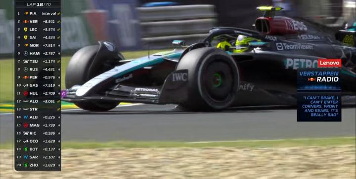 维斯塔潘表示自己车辆的状况非常糟糕!他与皮亚斯特里的差距扩大至8.3秒!