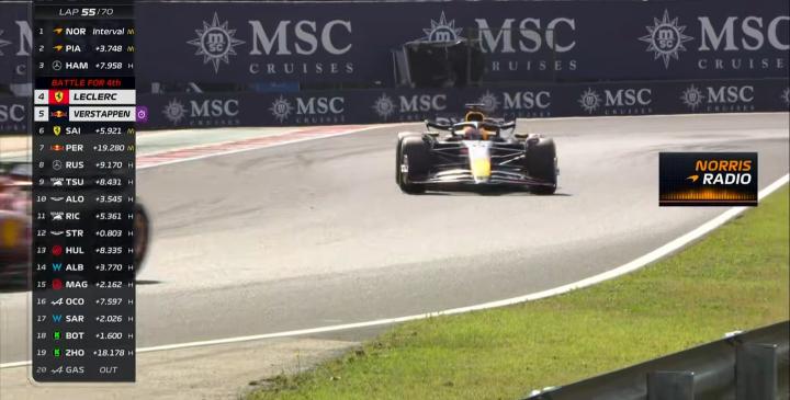 第4圈!维斯塔潘为避免罚时将位置归还给诺里斯!皮亚斯特里在前方领跑!