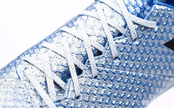 Messi 16.1从外观上看来,给人最明显的感觉就是高贵,尤其是银蓝和深蓝配色为最,球鞋表面菱形的网格给人很强的视觉冲击力,甚至连梅西本人的专属Logo都做了衬托而大胆的做了淡化处理。可是正是由于Messi系列的配置全是由球员本人说了算,而并非Adidas的专业设计师,这个Messi 16.1和前作Messi 15.1却是有着天差地别的。最明显的差异就在于鞋面核心材料的运用上,尽管上一代的超纤维面料也是备受好评,但是应球王的要求,Messi 16.1大胆的拿掉之前的设计,使用了时下最为火热的针织面料。虽然针织面料的创意最早出自于Nike的鬼牌系列,但是迄今为止针织材料的巅峰却是这双Messi 16.1!Messi 16.1的评价是更进一步,呈现出比Messi 15.1更为优秀的产品。
