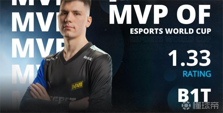 b1t以10张地图场均1.33rating荣膺EWC赛事MVP,这也是大B哥职业生涯首枚HLTV MVP奖牌。