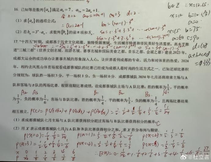 记者晒成都市高三数学试卷:中超球队成都蓉城成为一道考题
