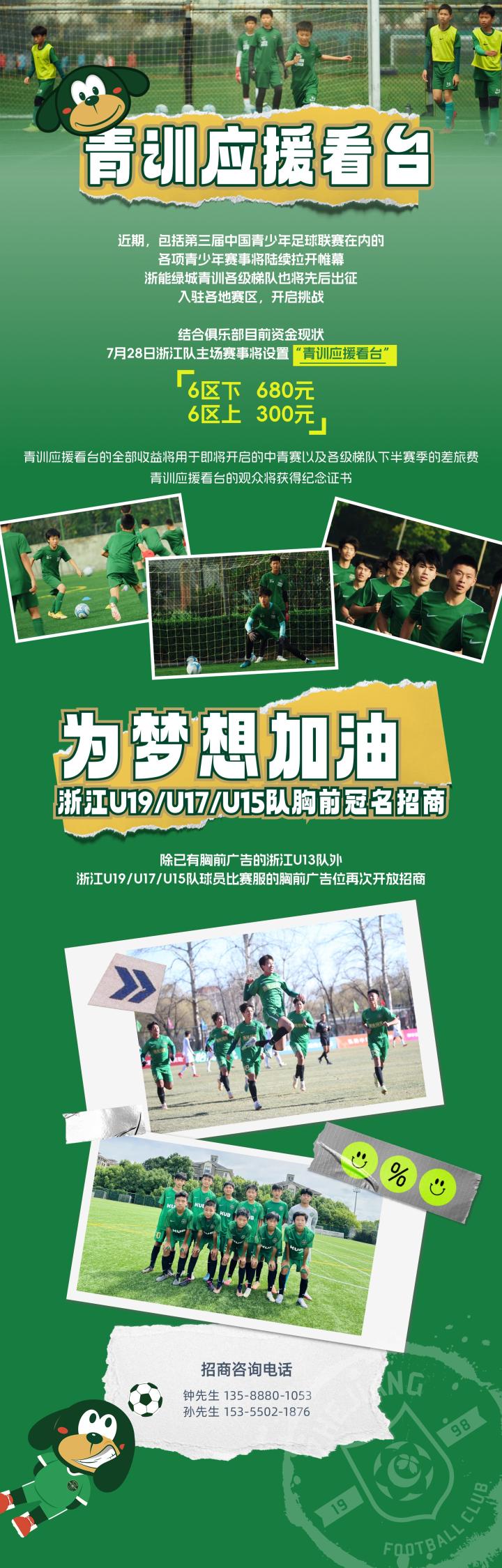 SOS!浙江FC目前资金情况,已经到了极其困难的地步。俱乐部已拖欠数月工资,本年度的奖金也未曾发放。除一线队球员、各级队伍教练员、俱乐部工作人员等工资奖金外,广告物料、餐饮等供应商的费用,俱乐部目前也无力结清。去年浙江FC依靠自身的开源节流,以及来自股东、省委省政府的阶段性支持,坚挺过来。但现在……开设青训应援看台、梯队胸前广告持续招商,是重视青训建设的浙江FC的自救行为。浙江FC自成立之日起,便非常重视青训,成立二十余年,一直深耕青训此次推出“青训应援看台”,也是以市场化思维,通过俱乐部自身的市场化“自救”行为,以期为各级梯队的训赛提供更多支持。