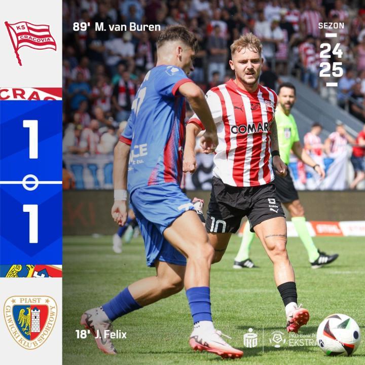 克拉科维亚与皮亚斯特连续三次交手都未能分出胜负。第18分钟,费利克斯推射帮助皮亚斯特率先取得进球。第89分钟,范比伦打空门得手,为克拉科维亚完成绝平。