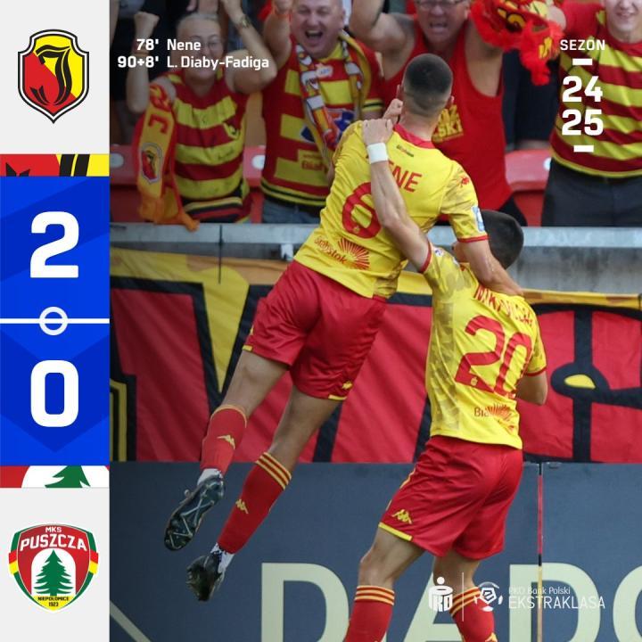 卫冕冠军雅盖隆取得揭幕战胜利。第78分钟,内内禁区内扫射破门,帮助主队打破僵局。补时第8分钟,迪亚比-法迪加在多人包夹下打门得手,帮助雅盖隆锁定胜局。