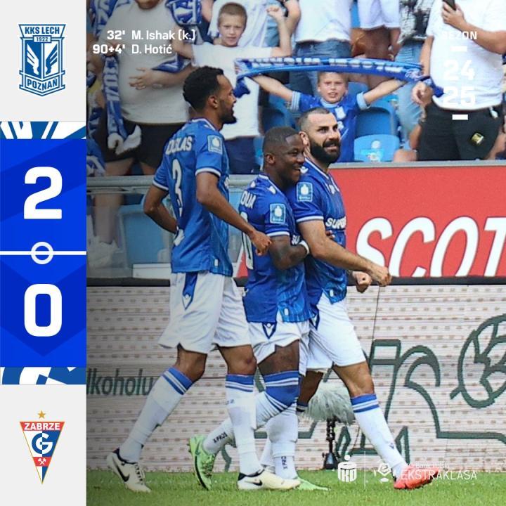 波兹南莱赫取得新赛季开门红。第32分钟,伊沙克点射破门为主队先下一城。补时第4分钟,霍蒂奇突入禁区后小角度打门得手,为莱赫锁定胜局。