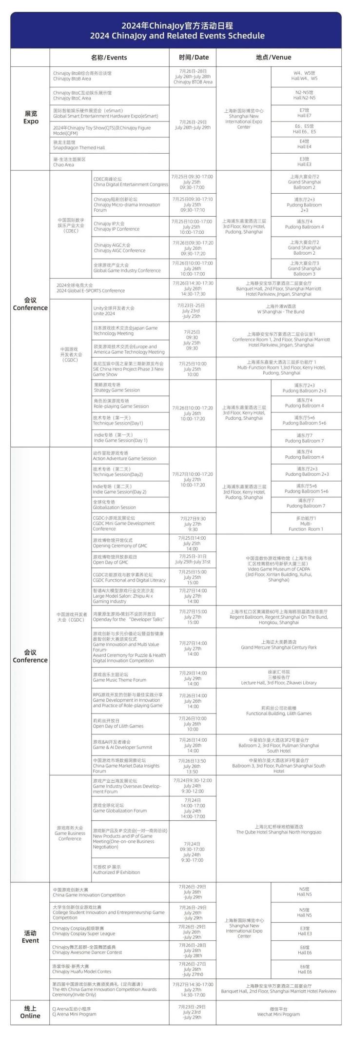 ChinaJoy组委会正式公布 2024 ChinaJoy 官方活动日程: