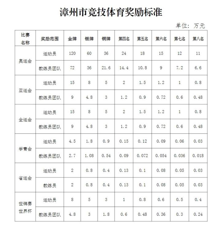 日前,福建漳州市政府发布《2024—2027年度漳州市竞技体育奖励办法》的通知,漳州市运动员巴黎奥运会摘金将获得120万元奖励。