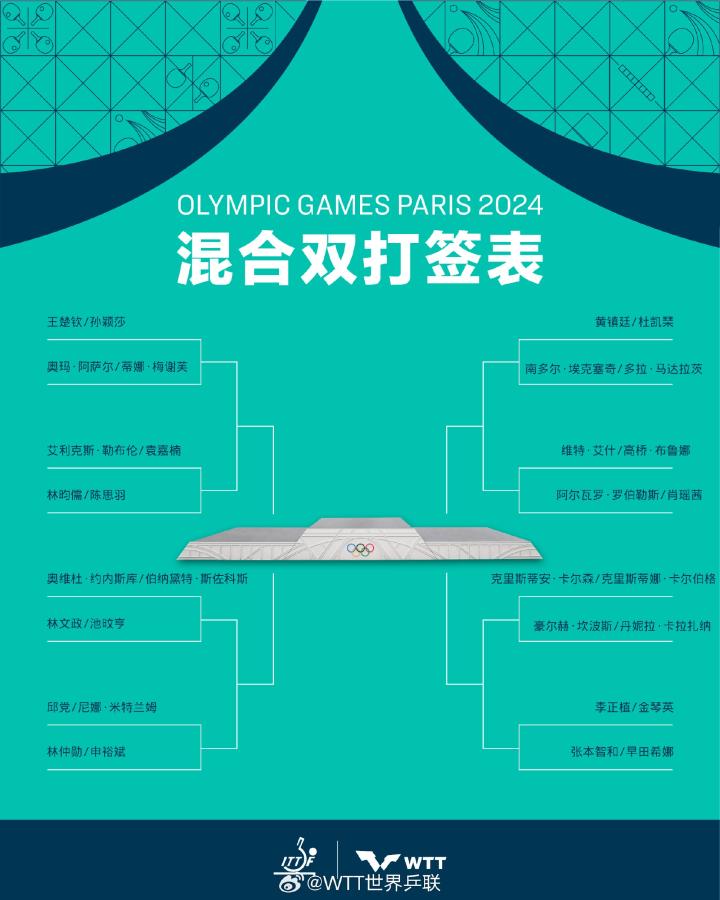 巴黎奥运乒乓球混双抽签:莎头与韩国组合林仲勋/申裕斌同半区