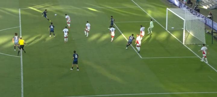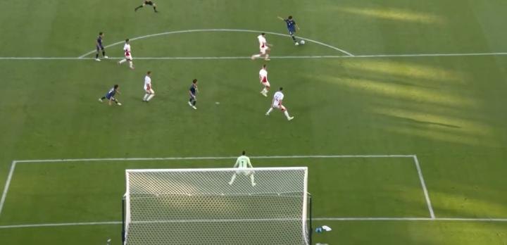 第18分钟,先拔头筹,大细步梦助攻,三户舜介破门,日本国奥1-0
