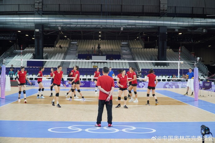 当地时间7月25日,中国女排上午进入奥运村,下午便抵达南巴黎竞技场进行赛前第一次适应场地训练。