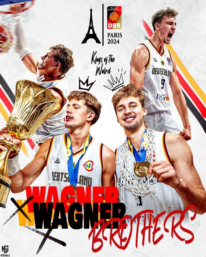 弗兰兹和莫里兹-瓦格纳这对兄弟是本届奥运会又一对同场竞技的兄弟组合,他们都效力于NBA的奥兰多魔术队。哥哥莫里兹-瓦格纳司职中锋,上赛季在魔术常规赛场均10.8分4.3篮板;弟弟弗兰兹-瓦格纳表现则更为亮眼,司职小前锋的他入选过世界杯的最佳二阵,上赛季常规赛场均19.7分5.3篮板3.7助攻,目前已经获得了魔术的大合同续约。