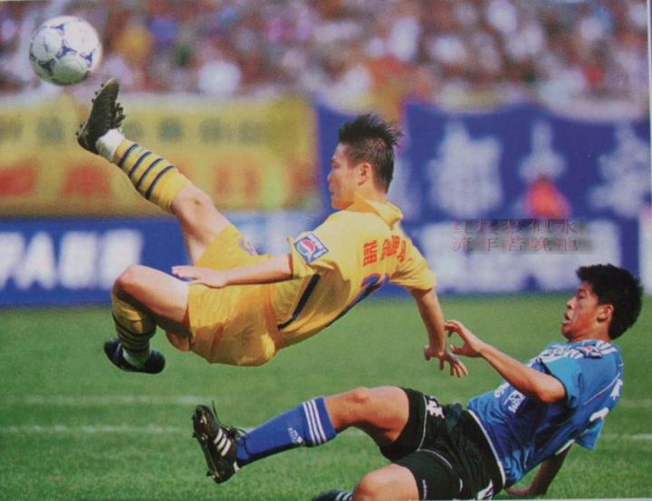 (1999年甲A联赛中,大连万达实德对阵四川,张耀坤对抗猎豹姚夏。)
