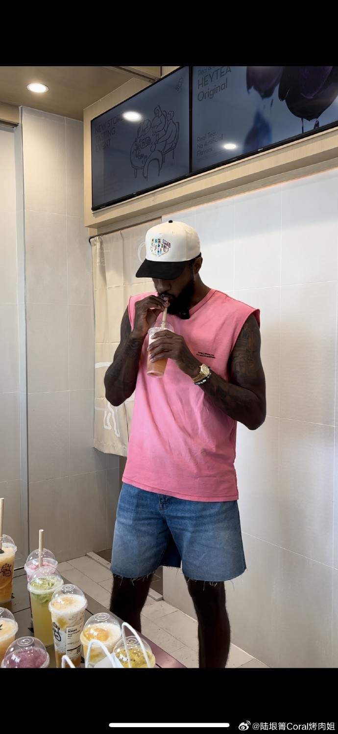 北京时间7月26日,NBA费城76人队球星保罗-乔治出席加州第一家喜茶店开业典礼。