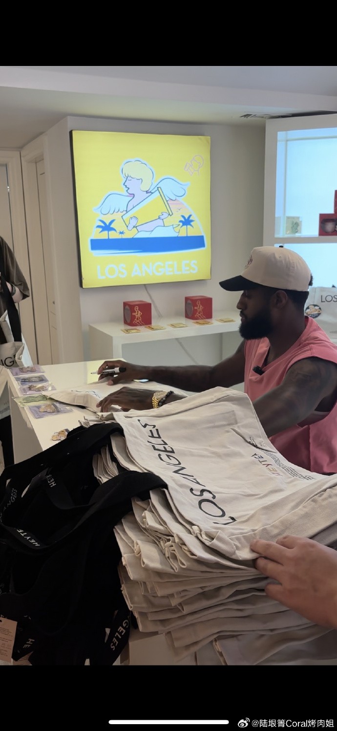 保罗-乔治现身加州喜茶店开业典礼,为顾客送上亲签托特包
