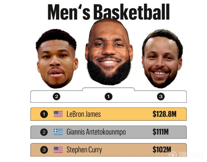 福布斯先是表示NBA球员是巴黎奥运会参赛运动员中整体收入最高的运动员群体,随后公布了奥运会篮球项目年收入最高的3位运动员,分别是詹姆斯(1.288亿美元)、字母哥(1.11亿美元)、库里(1.02亿美元)。
