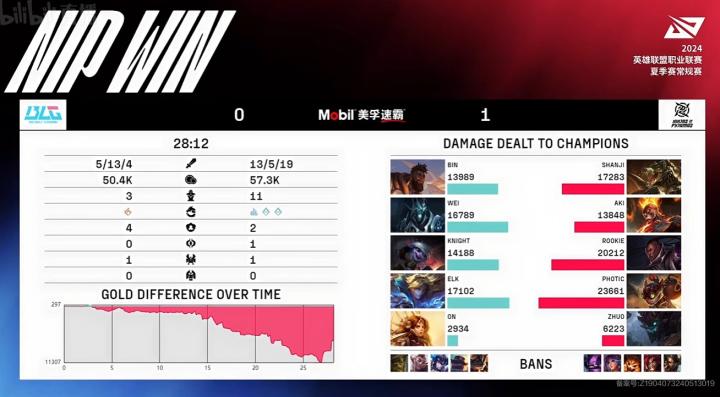 2024LPL夏季赛:BLG 2-1战胜NIP,NIP一胜难求苦吞七连败
