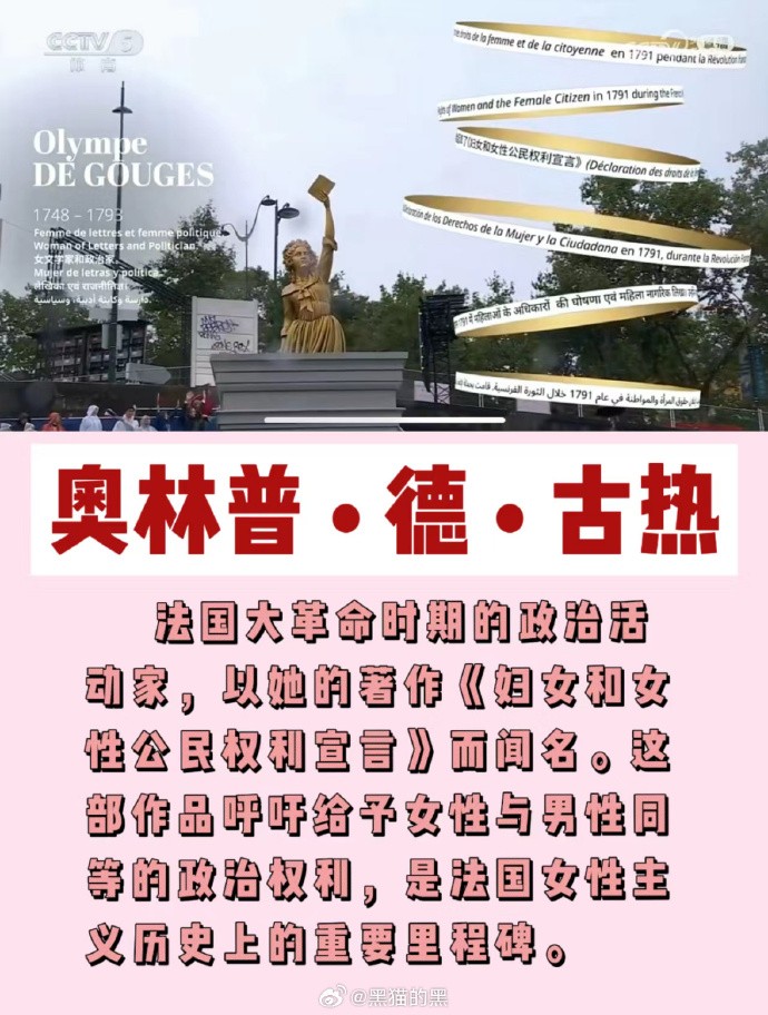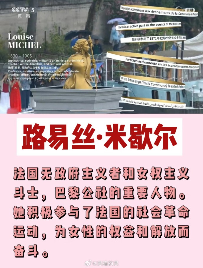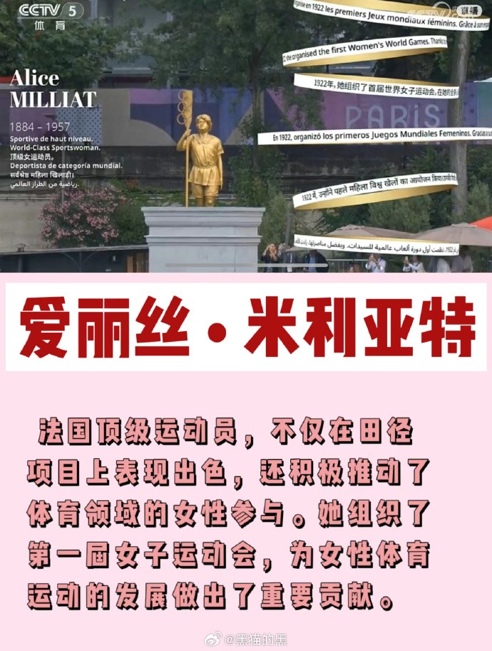 致敬女性力量,巴黎奥运会开幕式10座女性镀金雕像亮相小科爱足球 @懂球帝2024-07-27 10:26巴黎奥运会开幕式上,有10座女性镀金雕像亮相,向全球女性致敬。图片来源:博主“黑猫的黑”,下同而在这些雕像中,有作家、政治家、探险家和运动员,她们代表了全球几十亿女性。开幕式中的这一幕,也让全球很多女性感动,有女性博主表示:“看到这一幕,就像被点了穴一样。一点都不激烈的画面,我却热血沸腾。 ”展开更多