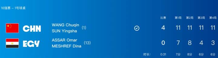 乒乓球混双1/8决赛:莎头组合4-0轻取埃及组合,晋级八强柯MVP96 @懂球帝2024-07-27 23:15巴黎奥运会乒乓球混双1/8决赛,王楚钦/孙颖莎4-0击败埃及组合奥玛-阿萨尔/蒂娜-梅谢芙,顺利晋级八强。前两局莎头组合小遇挑战,随后两人掌握绝对主动,连赢4局取胜。本场比赛是王楚钦的奥运会首秀,顺利拿到开门红。展开更多