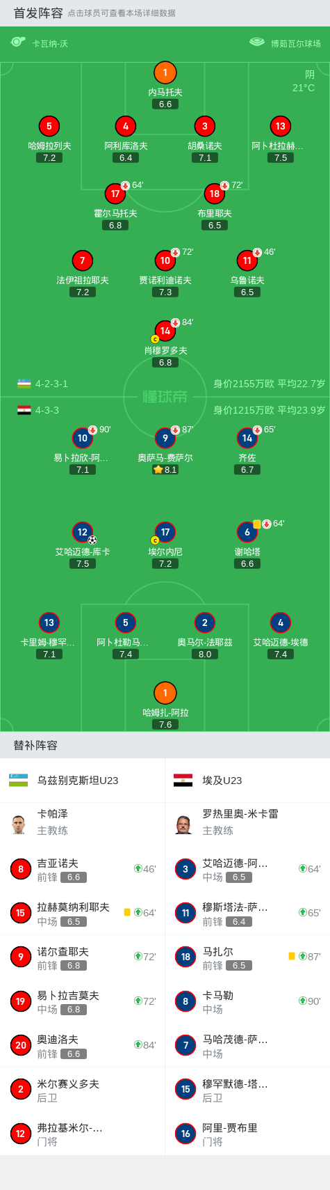 埃及U23 1-0乌兹别克斯坦U23,哈姆拉列夫失误,库卡建功