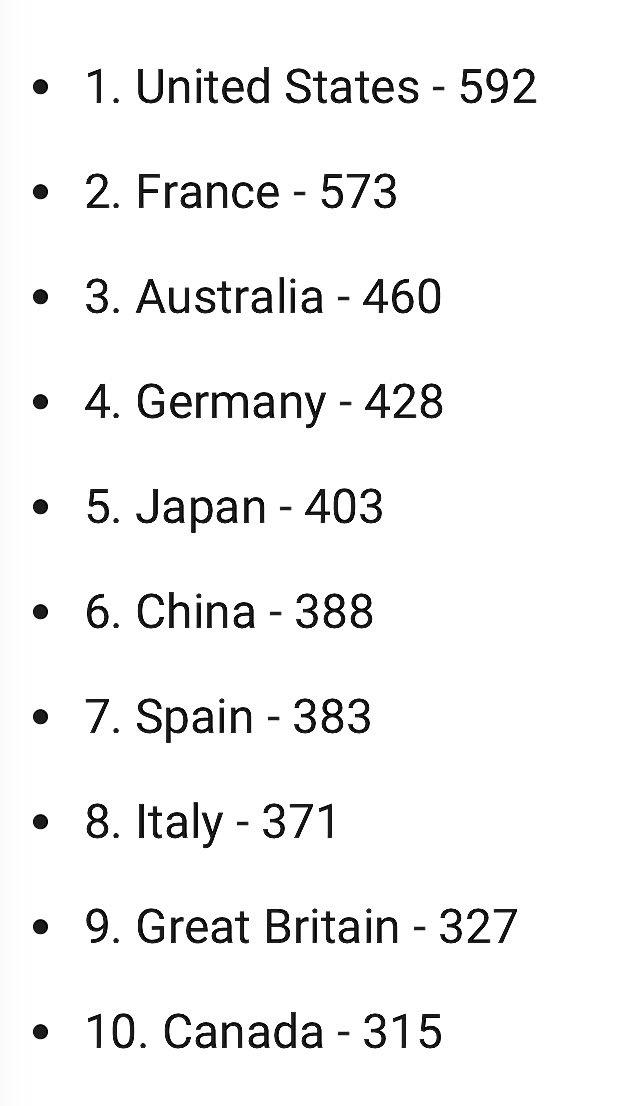 巴黎奥运会运动员最多的10个代表团澳大利亚代表团...图述数说 @懂球帝2024-07-28 14:11巴黎奥运会运动员最多的10个代表团 澳大利亚代表团的规模相当大,世界第三;英国低于西班牙和意大利,位列第九;中国很厉害,前十中唯一的非发达国家。展开更多