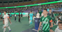 双方球员正在列队进场,比赛即将开始