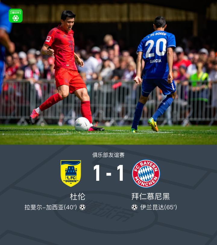 热身赛拜仁1-1德地区球队杜伦,伊兰昆达扳平,伊藤洋辉伤退