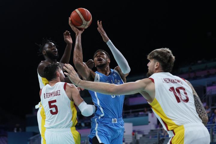 西班牙男篮半场49-35希腊男篮,字母哥次节1分未得