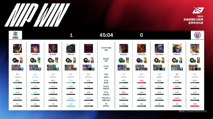 2024LPL夏季赛:NIP 1-2 LGD,LGD终于迎来首胜送NIP八连败