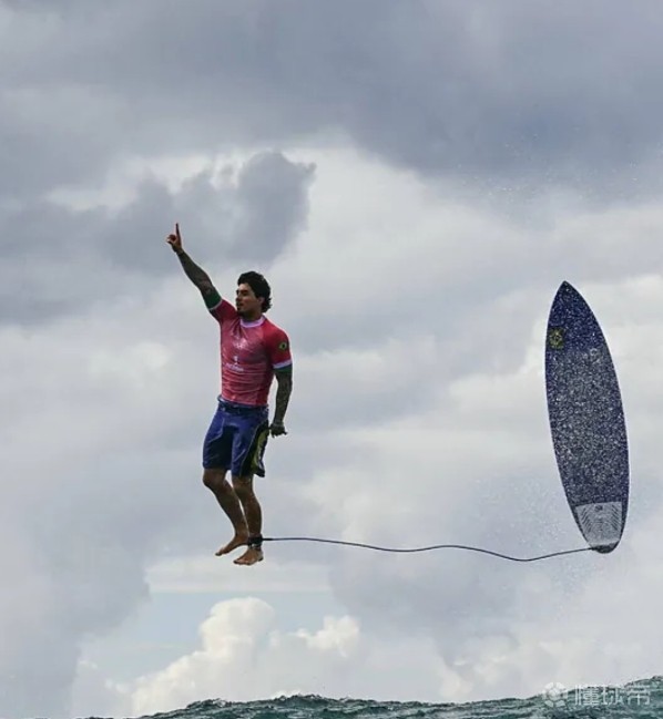 宛如腾云驾雾,巴西选手在奥运冲浪项目获胜后留下神奇定格