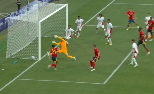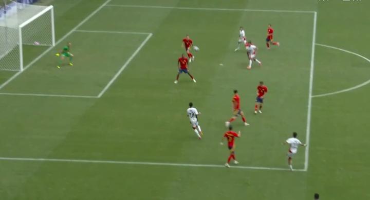 第75分钟,西班牙国奥后防再度送礼,伊图尔韦献两连扑